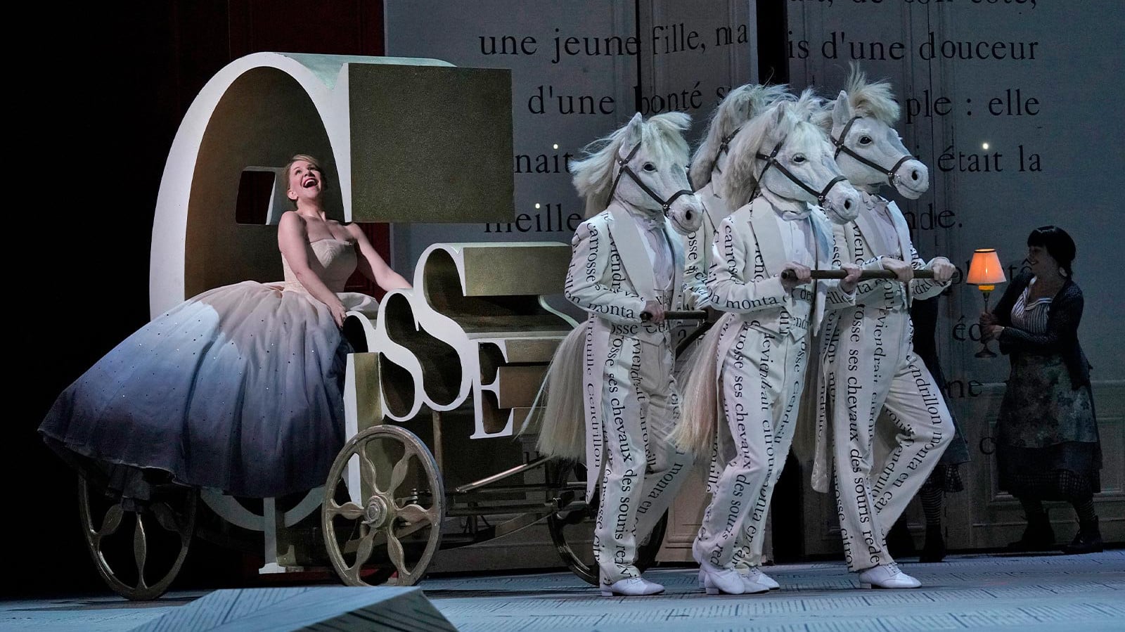 The 2017–18 Live in HD season concluded with an enchanted performance of Cendrillon, Massenet’s glittering operatic adaptation of the Cinderella story. This charming staging by Laurent Pelly, which bursts to life with the director’s characteristic wit and whimsy, stars American mezzo-soprano Joyce DiDonato as the title outcast-turned-princess. Mezzo-soprano Alice Coote offers a touching portrayal of the pants role Prince Charming, while soprano Kathleen Kim shines as the Fairy Godmother. Mezzo-soprano Stephanie Blythe, as the outlandish Madame de la Haltière, and bass-baritone Laurent Naouri, as the haggard Pandolfe, round out the principal cast. On the podium, conductor Bertrand de Billy leads a performance that is equal parts madcap comedy and heartfelt romance.