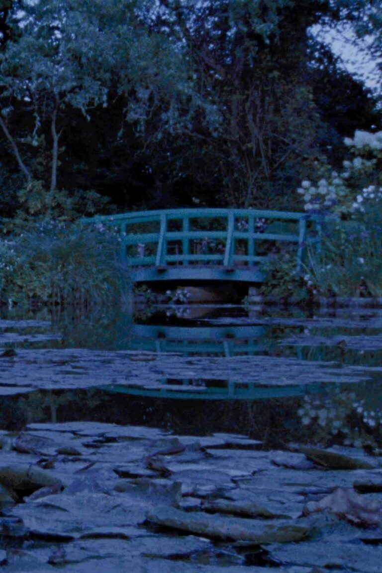Shot in Claude Monet’s Garden in Giverny (France) this film is a search for its cusp — a possible point of passage, set at the limit of the scope of representation and at the beginning of the animal and the vegetal realms. The film shows the microscopic ecosystem that constitutes Monet’s “pictorial Garden”. It is an attempt to capture it from a non-perspectival point of view. Shot as a single sequence running the duration of a 400-foot reel, it features views of the edges of water-lily’s leaves and of Monet’s iconic green bridge, until the lens of the camera is intentionally removed to place the analogue film directly in contact with the environment, recording its presence with no interface. The abstract image resulting from this process captures the shimmering lights and movements of all beings during this quiet summer night.
