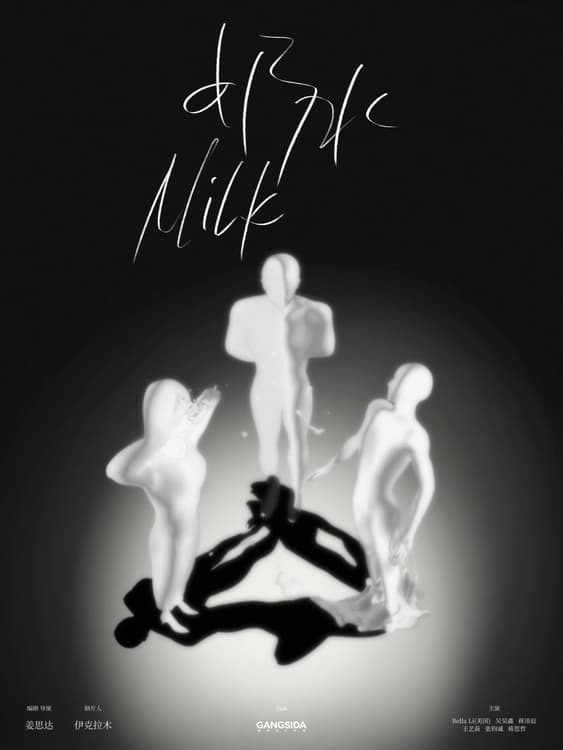 A couple is watching a video in a theater. The video shows three children playing happily on a grassy field, drinking milk, when a third man comes into the theater and sits behind the couple. He watches the film for a while, then slowly took off his shoes and put his bare feet on the right shoulder of the man in front of him.