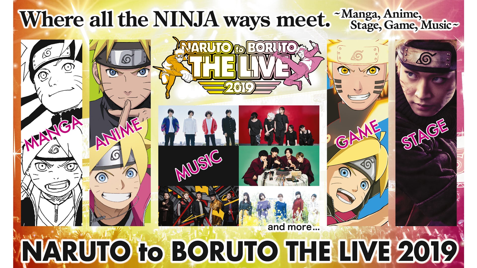 “NARUTO to BORUTO THE LIVE 2019”, a special event for the 20th anniversary of the first publication of “NARUTO” series in Weekly Shonen Jump!! Featuring live performances by artists performing the theme songs of both “NARUTO” and “BORUTO: NARUTO NEXT GENERATIONS”, anime cast members reading original story episodes, and more.
