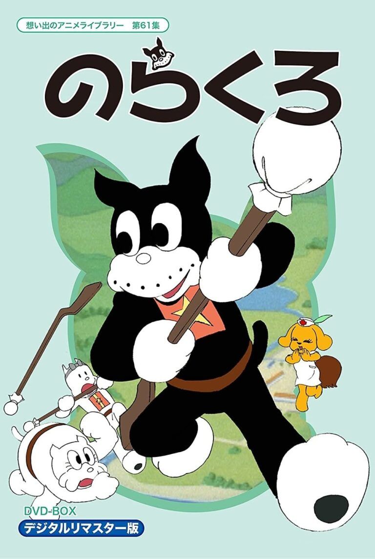 Norakuro is a black dog enlisted in the “Mokenrentai” (Fierce Dog Brigade), an Imperial army of dogs fighting in a war against the enemy Monkey Army. Norakuro is a stray black-and-white dog in an army of white dogs who blundered his way while being a Private Second-Class. This series was relatively faithful to the comics. One big change, however, was the addition of the army nurse Miko, whom Norakuro had a crush on. For this series, Norakuro was voiced by Nobuyo Ooyama, who would later become noted for voicing Doraemon. (Source: Cartoon Research)