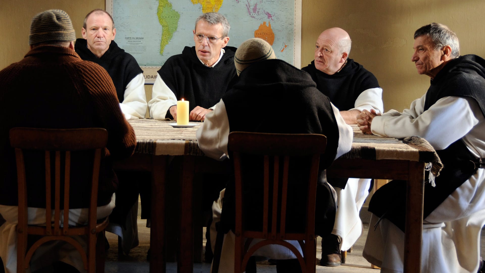 French drama based on the 1996 kidnapping and killing of seven monks in Algeria. A group of Trappist monks reside in the monastery of Tibhirine in Algeria, where they live in harmony with the largely muslim population. When a bloody conflict between Algeria’s army and Muslim Jihadi insurgents disrupts the peace, they are forced to consider fleeing the monastery and deserting the villagers they have ministered to. In the face of deadly violence the monks wrestle with their faith and their convictions, eventually deciding to stay and help their neighbours keep the army and the insurgents at bay.
