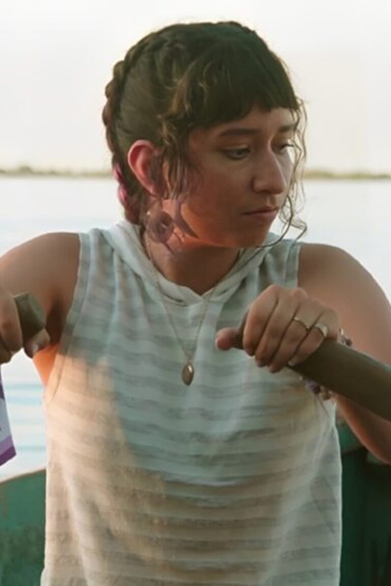 Mayra, nineteen, lives with her six-month-old daughter Juana and her fifty-year-old father Orlando, in the Puerto Sánchez neighborhood of Paraná. They are both fishermen, although her true passion is composing rap and freestyle lyrics while out fishing on the river in a canoe.