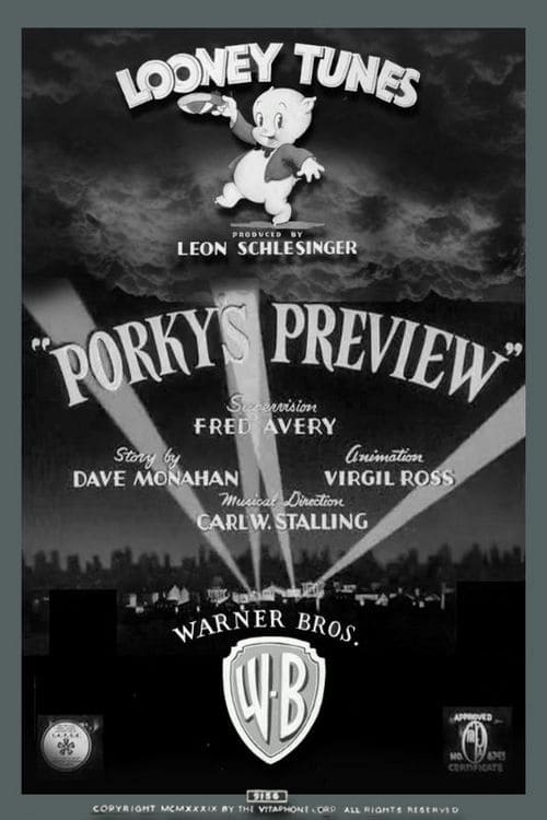 The audience enters Porky’s movie theater, with a collection of quick gags: A firefly acting as usher, a kangaroo taking tickets and putting the stubs in her pouch, a chicken buying child tickets for her eggs. A skunk tries to buy a ticket, costing a nickel, but he only has one scent. He looks for a way to sneak in. Meanwhile, Porky introduces the show: a collection of cartoons, drawn as stick figures. At the end, the audience is all gone because the skunk managed to sneak in. Porky’s cartoons include: Circus Parade, Choo-Choo Train, Soldiers (Marchin), Horse Race, and Dances (hula, Mexican hat, and ballet). All accompanied by a self-parody musical score.