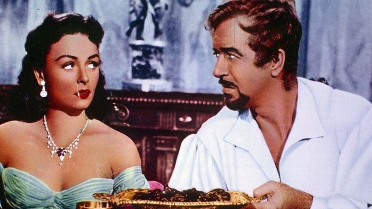 After staging a mutiny and commandeering his own ship, famed pirate Barbarossa (John Payne) takes hostage a spirited Spanish noblewoman named Alida (Donna Reed), intending to trade her to her fiancé, Capt. Jose Salcedo (Gerald Mohr), for a handsome ransom. But Barbarossa falls in love with Alida, who meanwhile discovers that the roguish swashbuckler is more honorable than her erstwhile betrothed.
