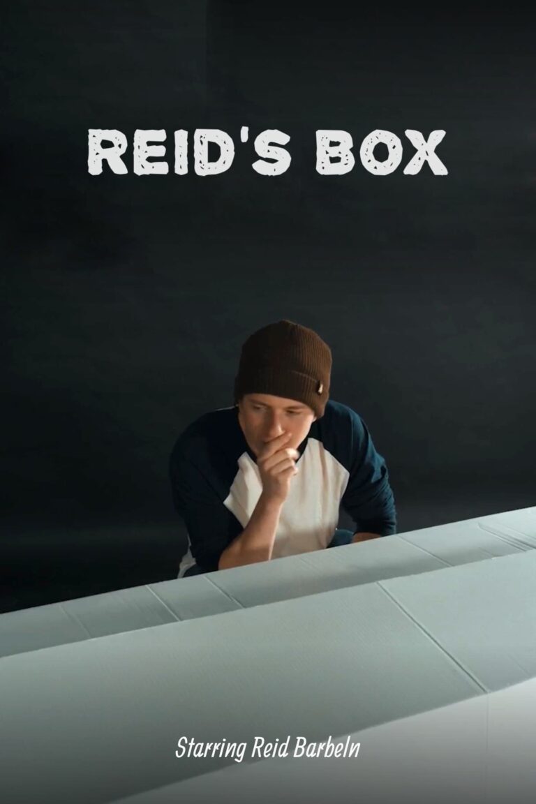 A college student showcases his mysterious cardboard box to a friend.