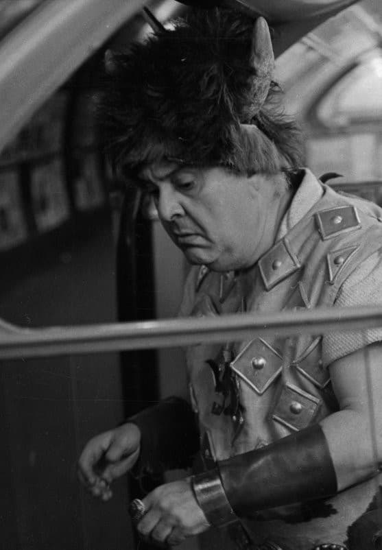An opera singer, dressed in full costume and dress, must navigate through the busy city streets to get to the theater in time for his performance. Filmed for the shelved portmanteau film ‘Red, White and Zero’ in 1967.