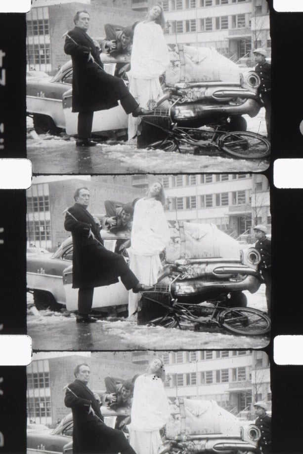 Filmmaker Jonas Mekas follows the surrealist artist around the streets of New York documenting staged public art events.