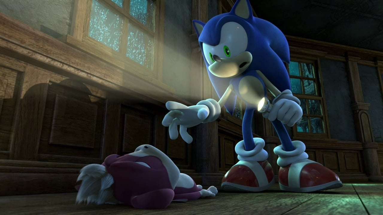 One night of severe rain, Sonic and Chip come by an old mansion where they decide to take shelter. Whilst Sonic seems unfazed by the creepy surroundings, Chip is scared out of its wits. The mansion is inhabited by three scary – yet sweet – ghosts who like to play tricks on innocent visitors: A cute and girlish ghost who likes to collect photographs of her terrified guests. The remaining two boy ghosts compete for her attention by taking photographs of their scare victims. Their scariness is the key to popularity in the realm of ghosts. The boy ghosts are excited at the prospect of hunting their new and unusual guests, Sonic and Chip. Who will win the ultimate competition to her heart?