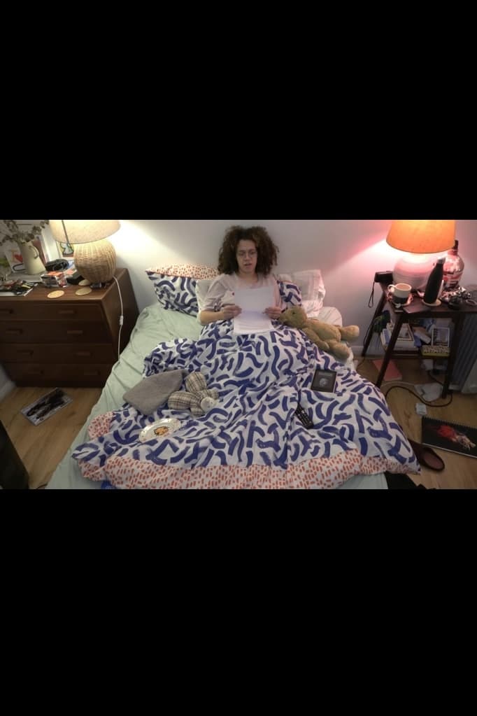 Jamila reads aloud a stack of printed emails written to individuals and organisations delaying, postponing, or cancelling work due to illness from her sickbed.