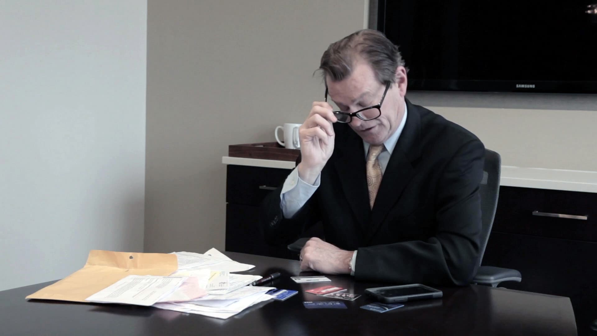 A challenged man is stalked by tall phantoms in business suits after he purchases a car with a mysterious black credit card.