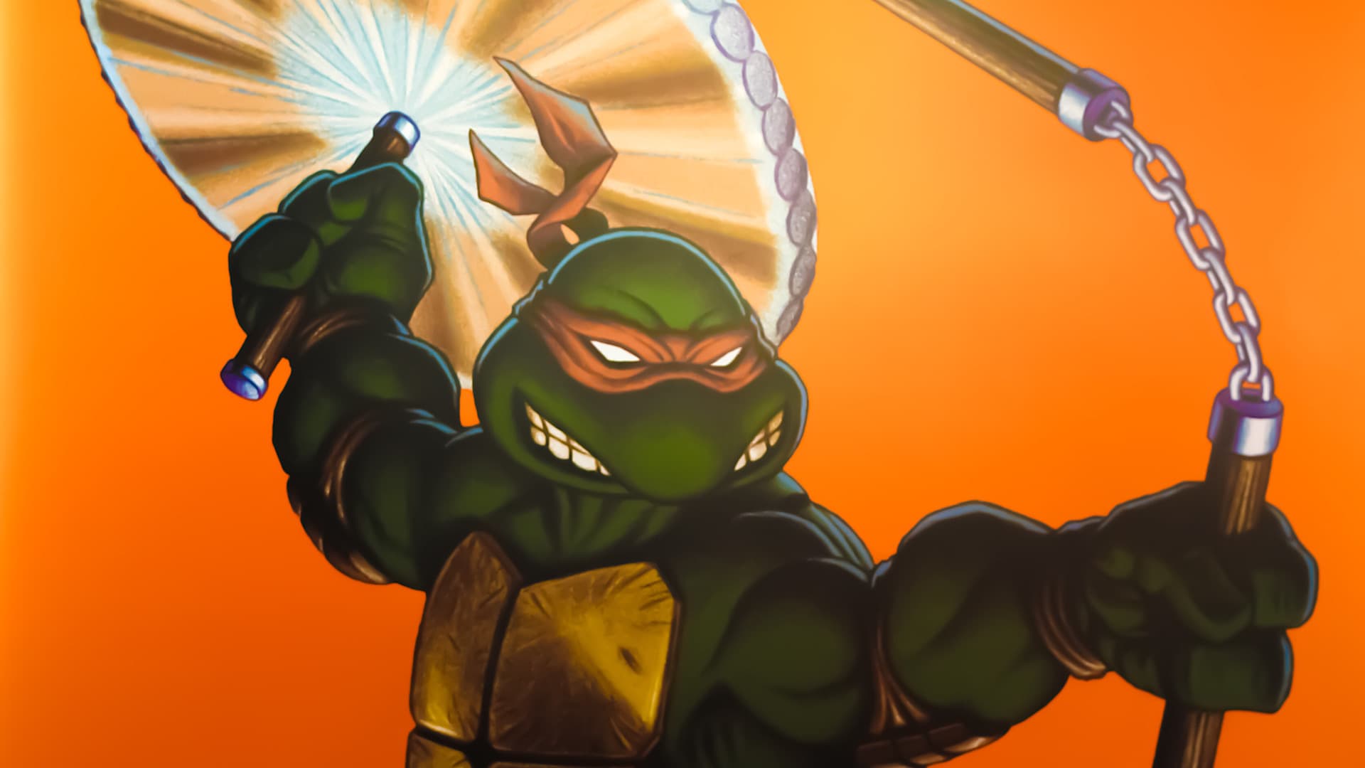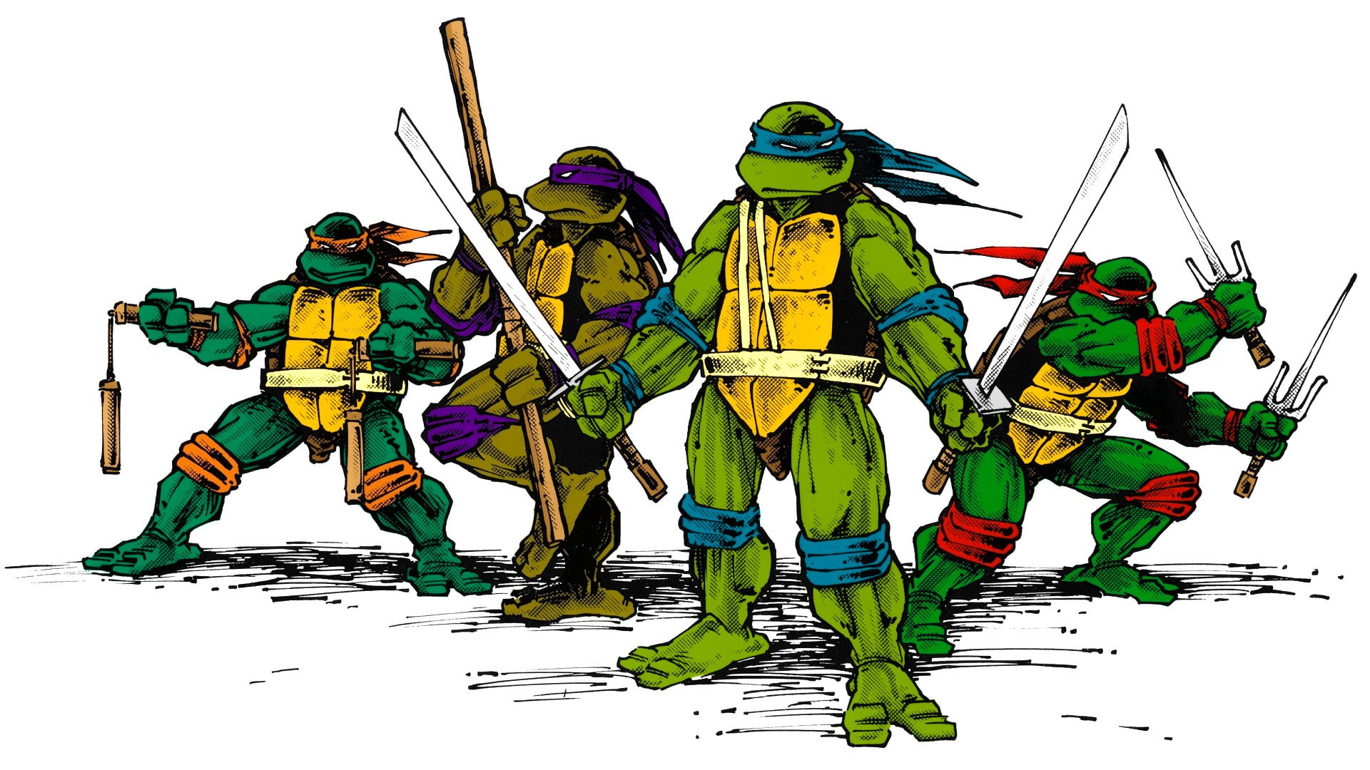 Four turtles fall into the sewers and are befriended by Hamato Yoshi a Japanese man sent to New York who was forced to live in the sewers. One day he sees a strange green glow which transforms the four turtles into human-like creatures. Hamato (now Master Splinter) changes into a giant rat from the green glow and teaches the turtles the skills of the ninja as they team up with news reporter April O’Neil to battle against Yoshi’s arch enemy Shredder and Krang, an alien warlord from Dimension X.