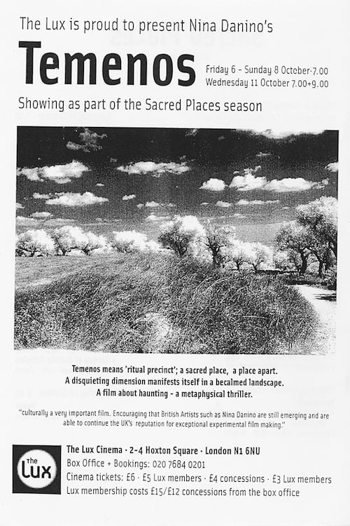 Temenos means a sacred site or ritual precinct. Temenos, the film, explores the phenomenon of visionary experiences. In the film we see locations where the Virgin Mary is said to have appeared, including Lourdes, Fatima and Medjugorje in Bosnia & Herzegovina where the visions continue. Nina Danino films the landscapes that have witnessed these transcendental appearances, imbuing them with a sense of the sacred.
