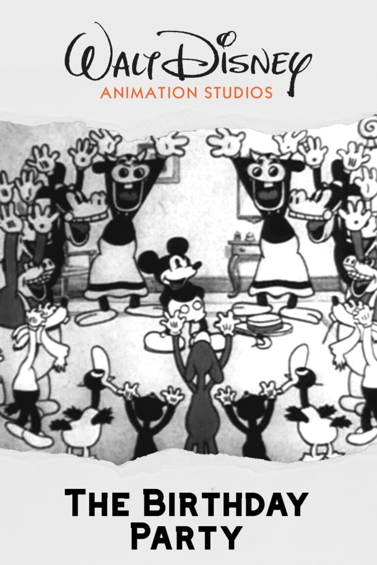 Mickey’s friends throw him a surprise birthday party at Minnie’s house. The chef brings out the cake (with 2 candles); Mickey manages to blow all the cake onto the chef’s face, while the candles stay lit. He unwraps his present: a miniature piano. He plays a duet of I Can’t Give You Anything But Love, Baby with Minnie, followed by an instrumental version of The Darktown Strutter’s Ball, which everyone dances to (including Mickey and Minnie, while the piano stools keep playing). Mickey then plays There’s No Place Like Home on the xylophone, then accompanies Minnie on another piece, after which the xylophone gets frisky and eventually dumps Mickey in the fish bowl.