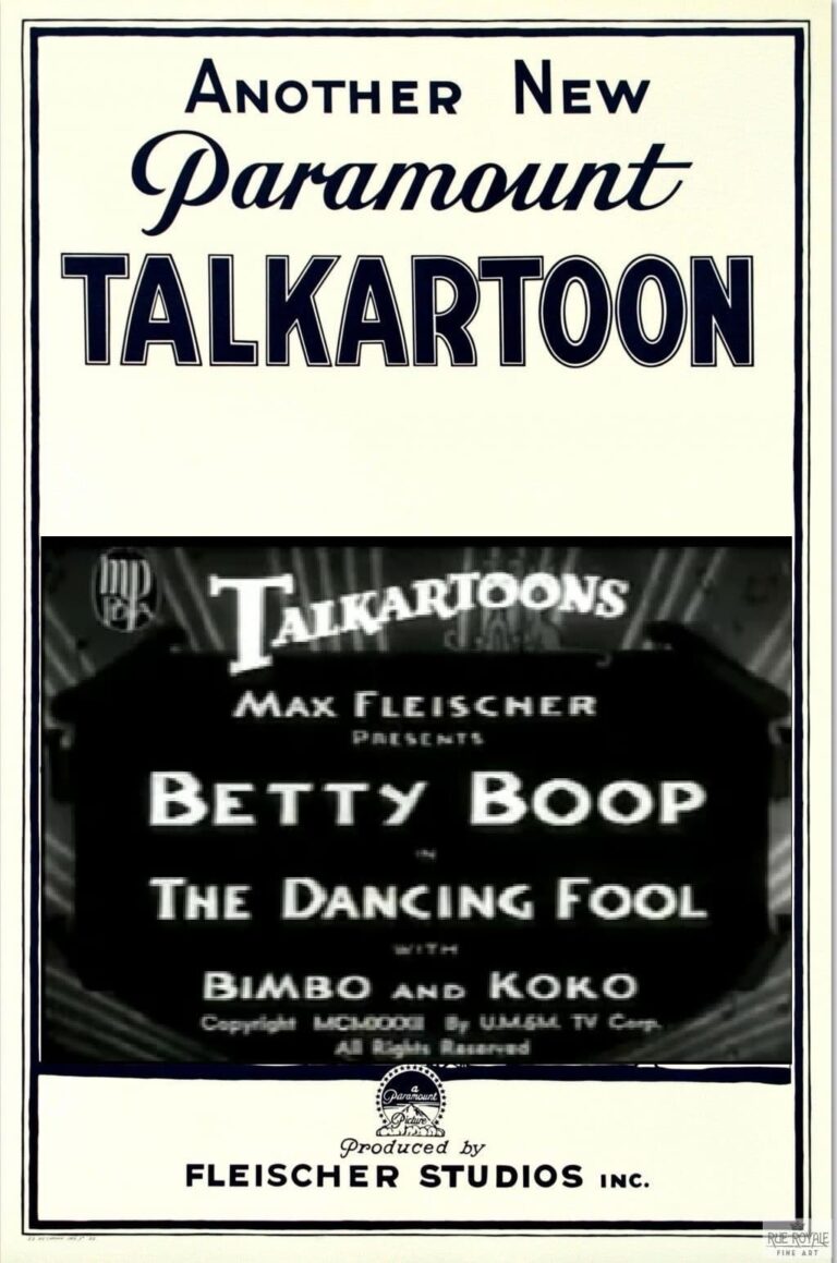 Daredevil sign painters Bimbo and Koko like what they see through the window of Betty Boop’s Dancing School, and stay for a lesson.