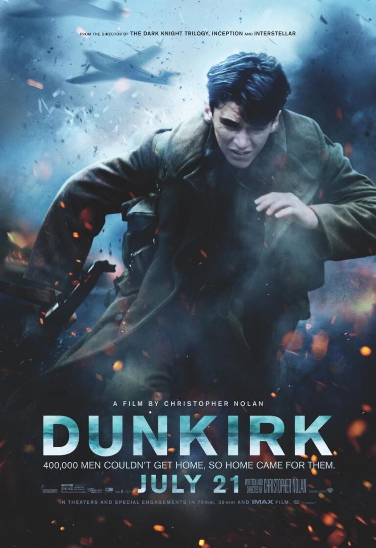 Nominated for eight Academy Awards including Best Picture and Best Director, Dunkirk is Christopher Nolan’s sweeping, emotional epic. Dunkirk opens as hundreds of thousands of British and Allied troops are surrounded by enemy forces. Trapped on the beach with their backs to the sea and home almost within sight, they face an impossible situation as the enemy closes in. The story unfolds on land, sea and air. RAF Spitfires engage the enemy in the skies above the Channel, trying to protect the defenseless troops below. Meanwhile, hundreds of small boats manned by both civilians and military mount a desperate rescue effort, risking their lives in a race against time to save even a fraction of their army. When 400,000 men couldn’t get home, home came for them. – Warner Bros.