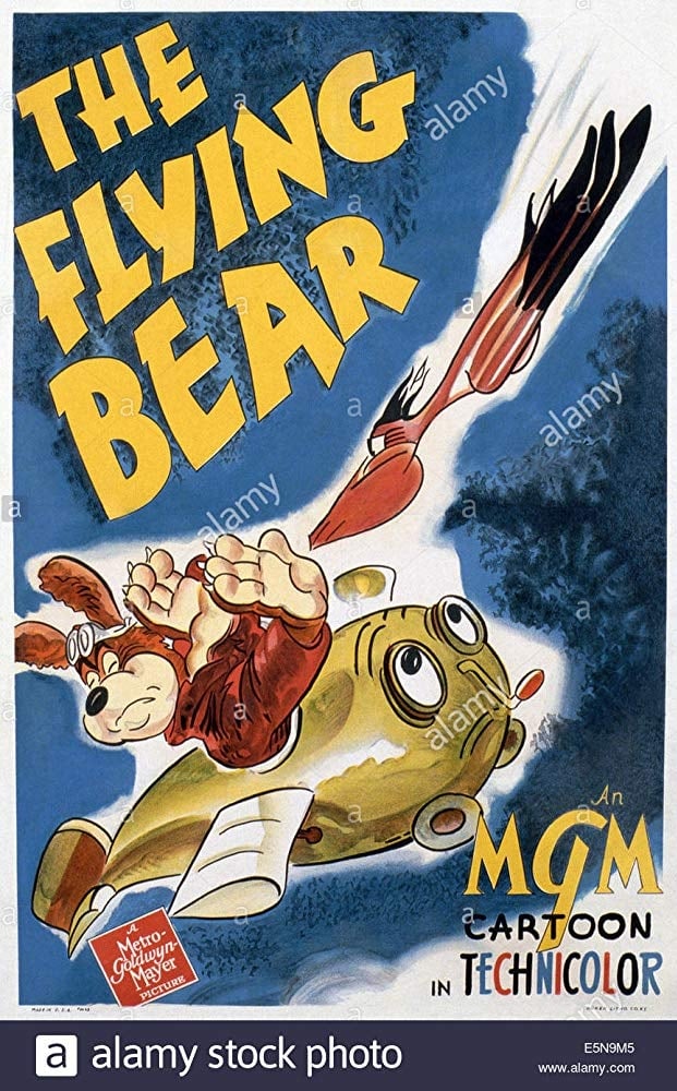 Barney’s an aviation mechanic for the Army, though his technique is more like a bartender. His plane is a cute little prop that’s not only much smaller than the jets but much more anthropomorphic. Once they get aloft, the plane goes after a pelican out of sheer playfulness, but it turns into an all-out war. The pelican finally demolishes the plane. The plane and Barney plummet to the ground, where they land in the seats of a much larger plane. Barney is clearly unfamiliar with the controls, and takes them on a harrowing trip high into the atmosphere, where they freeze solid until they crash into “Ceiling Zero”; once again, they are demolished and plummet to Earth. In the hospital, Barney and his plane have adjoining beds.