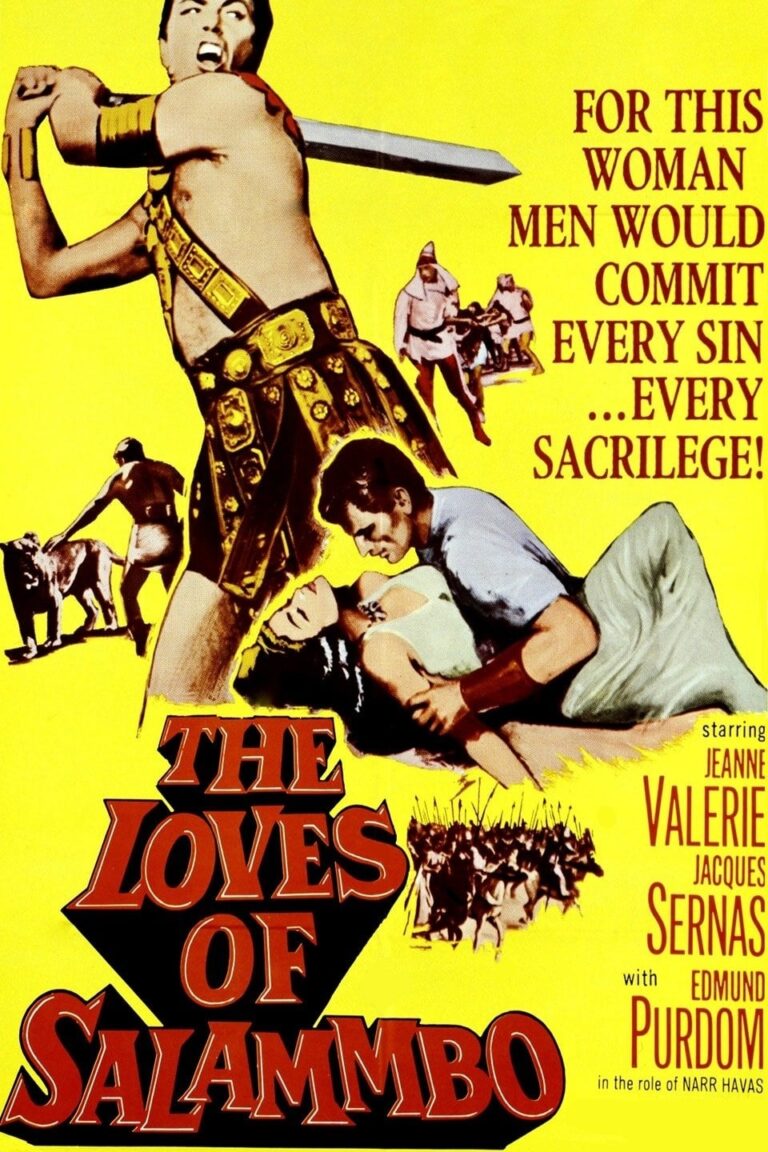 During the 3rd century B.C. a horde of barbarians are hired by the Phoenian city of Carthage to fight against the Roman empire, but when the city’s ruler is unable to fulfill the promised payment made to the mercenaries, they attack the African settlement, where Salammbô –the king’s daughter and high priestess of goddess Tanit- tries to settle the matter when the Barbarian leader who has fallen for her steals the sacred veil of Carthage from the temple, without taking into account the evil schemes of a powerful member of the council of wise men.