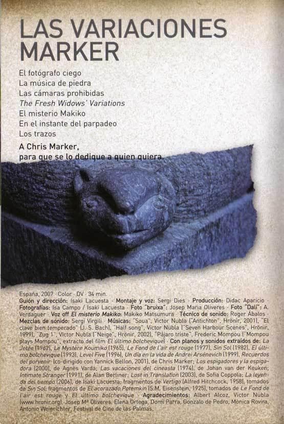 “If Isaki Lacuesta wants to use some of my footage, that’s ok by me, at the end of the day, I have spent my life copying others” (Chris Marker). An act of cinematic love for the director of La Jetée. “To shoot under the pseudonym Chris Marker, you need to fulfill a few requirements, some very strange. The Markers are a secret sect who meet up only once a year… And cameras are forbidden at the meeting”.