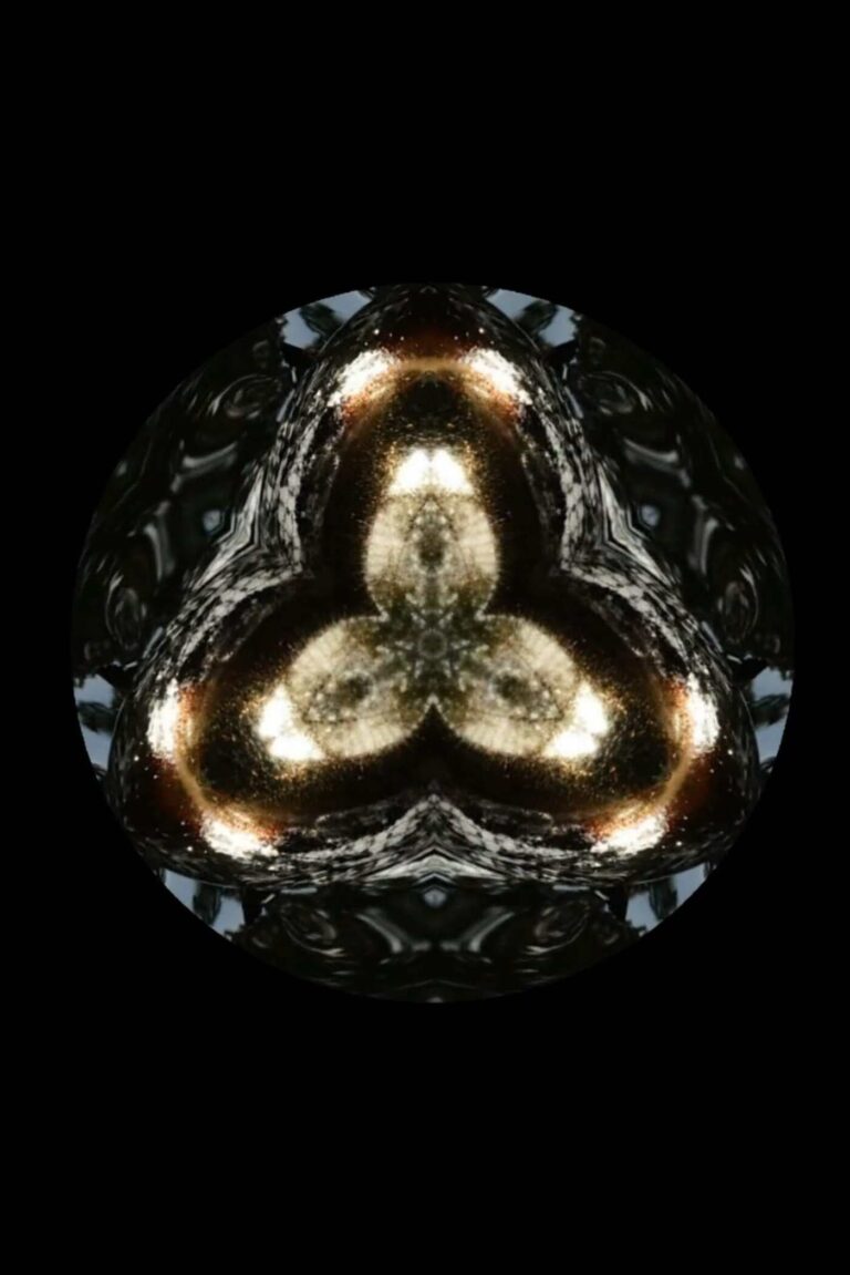 Two circles, twice the same image: a restless pool of simmering tar. The soundtrack also evokes hellish associations with an eyewitness report of atom bombs dropping on Japan. The abstract image and resigned voice of a nurse lift the factual information to a different level, as if we are looking at an MRI scan of someone’s thoughts.