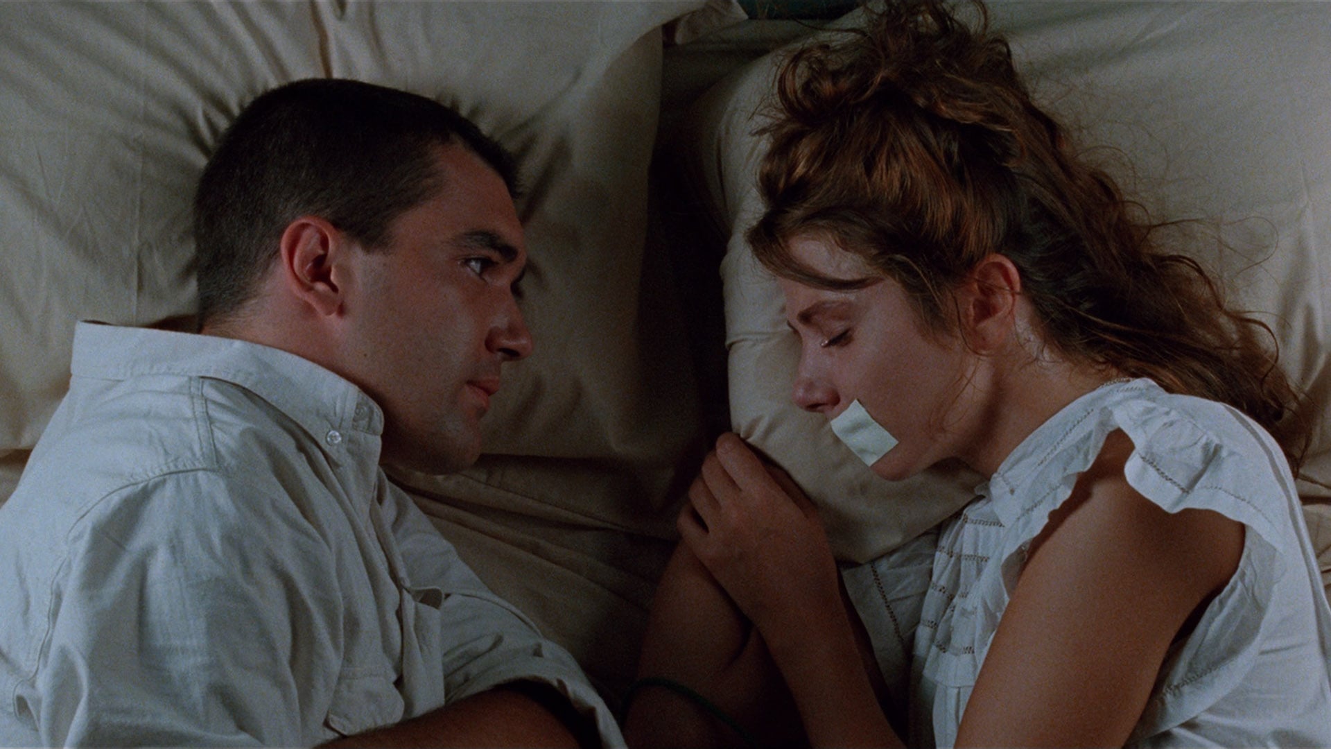 Recently released from a mental hospital, Ricky ties up Marina, a film star he once had sex with and keeps her hostage.