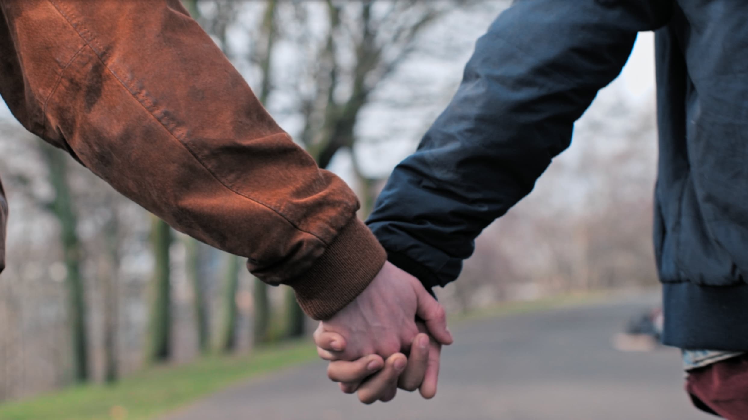 Two men hold hands in a public place, but even in 2018, something’s not quite right.