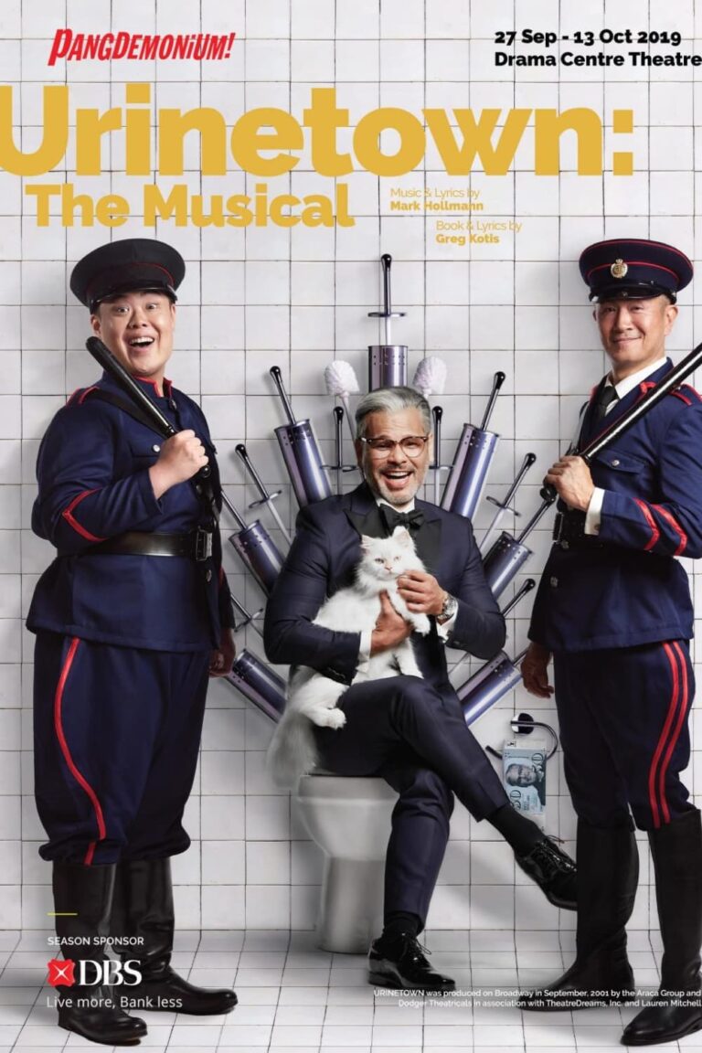 In a fictional “most expensive city in the world”, a “cross-border water crisis” has led to a government ban on private lavatories. The woeful water shortage sees the erection of pay-to-pee public toilets operated by an all-powerful corporation, Urine Good Company, owned by the megalomaniac Caldwell B. Cladwell. Breaking the laws against gratuitous public peeing means urination ruination, with offenders being exiled in the dreaded and mysterious “Urinetown”, never to be seen again. Winner of three Tony Awards, three Outer Critics Circle Awards, two Lucille Lortel Awards and two Obie Awards, URINETOWN is the hilarious musical satire that gleefully takes the piss out of politicians, populism, “people power”, capitalism, corporate corruption, and musicals themselves!