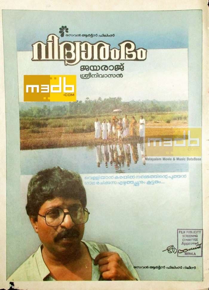 Vidhyarambham is a 1990 Indian Malayalam film, directed by Jayaraj and produced by GP Vijayakumar. The film stars KPAC Lalitha, Nedumudi Venu, Murali and Sankaradi in lead roles.